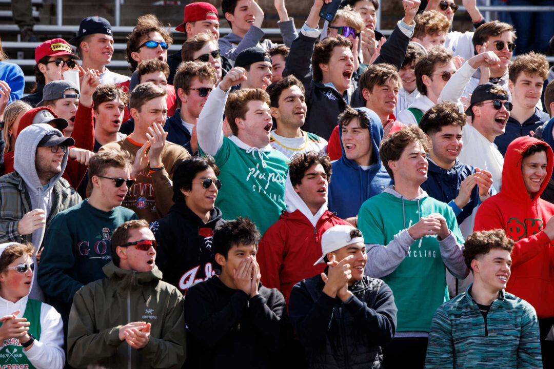 Phi Kappa Psi fans cheer on their team from the stands during Little 500 Qualifications at Bill Armstrong Stadium on Saturday, March 25, 2023. (James Brosher/Indiana University)