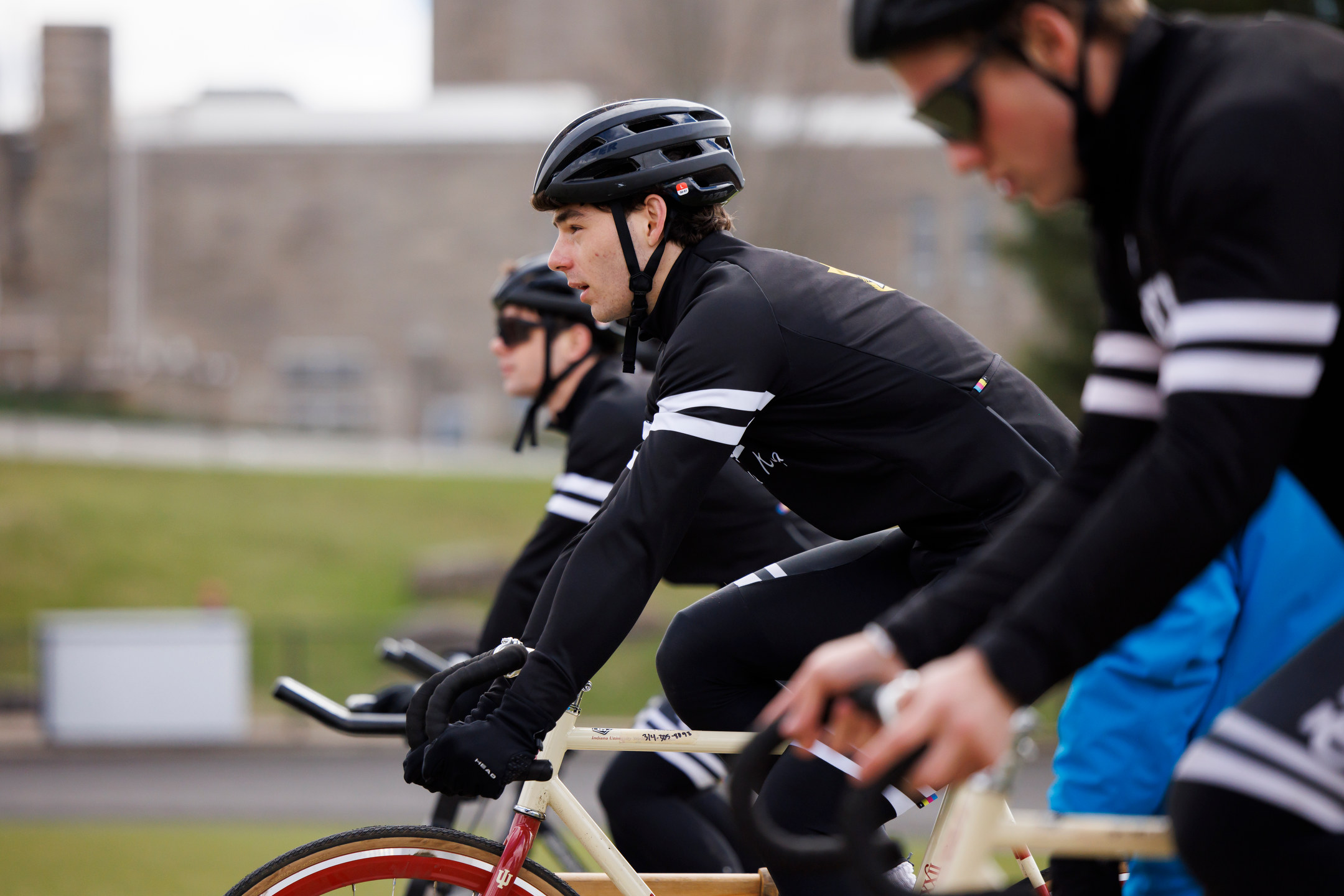 Pi Kappa Alpha (PIKE) rider Shaun Seguin races into turn three during Little 500 Qualifications at Bill Armstrong Stadium on Saturday, March 25, 2023. (James Brosher/Indiana University)Phi Sigma Kappa riders warm up before their attempt during Little 500 Qualifications at Bill Armstrong Stadium on Saturday, March 25, 2023. (James Brosher/Indiana University)Delta Tau Delta rider Brady Jarosinski keeps the bicycle from hitting the ground while making an exchange during Little 500 Qualifications at Bill Armstrong Stadium on Saturday, March 25, 2023. (James Brosher/Indiana University)Melanzana riders walk together along the back stretch before their qualifying attempt during Little 500 Qualifications at Bill Armstrong Stadium on Saturday, March 25, 2023. (James Brosher/Indiana University)