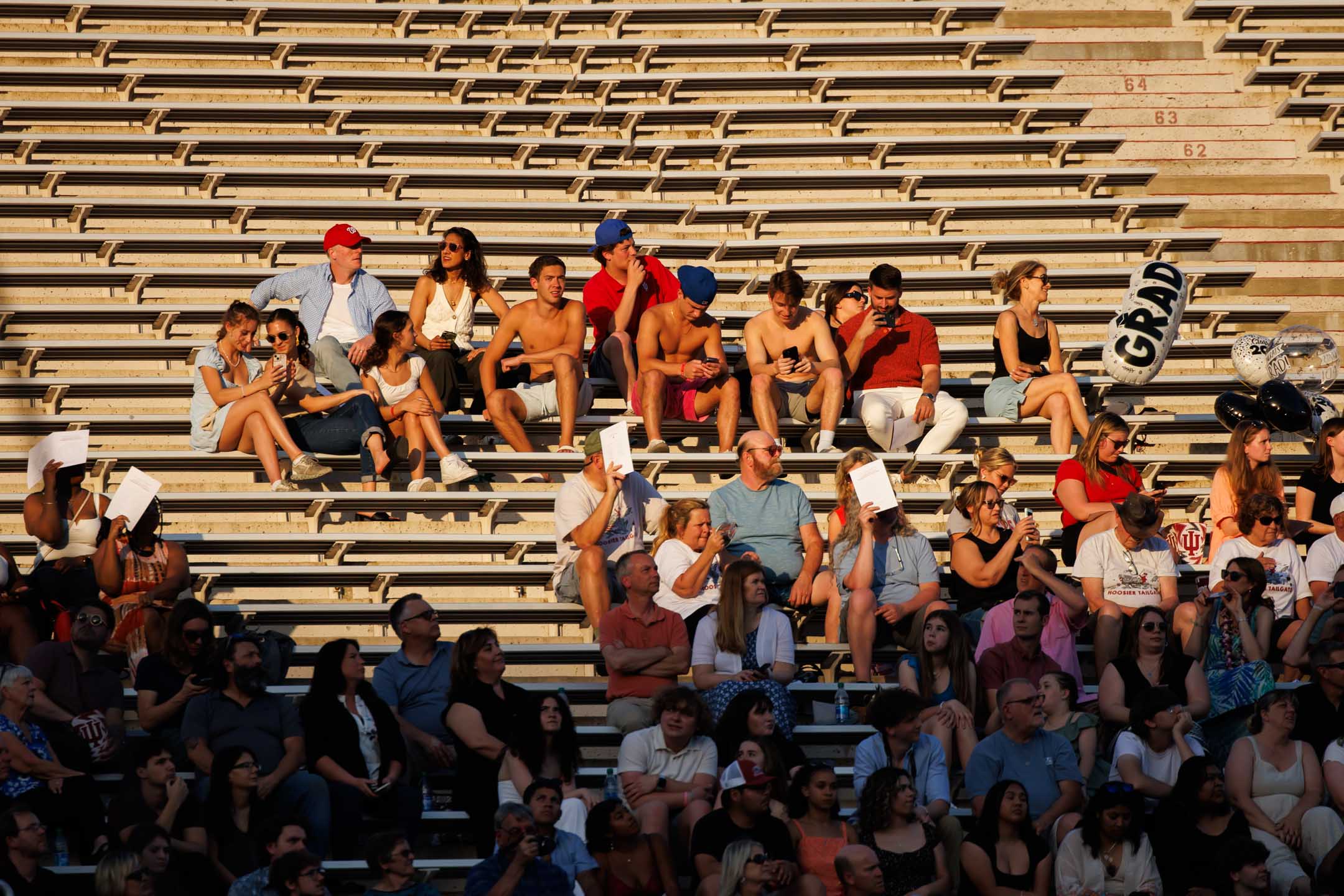 Audience members watch the processional during the Indiana University Indianapolis Commencement in Carroll Stadium on Thursday, May 15, 2025. (Photo by James Brosher/Indiana University)