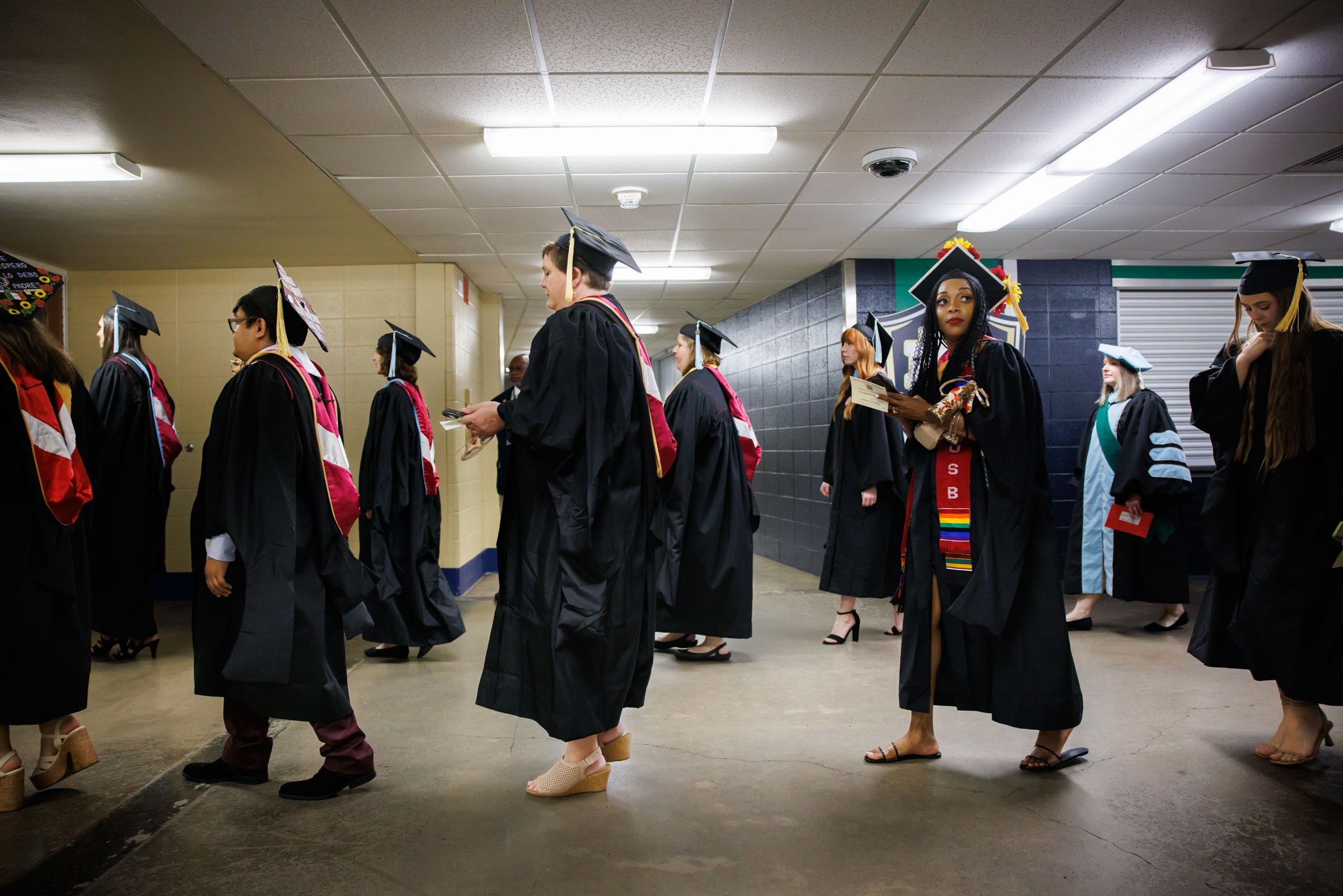 Graduates line up before the Indiana University Indianapolis Commencement in the Natatorium on Thursday, May 15, 2025. (Photo by James Brosher/Indiana University)