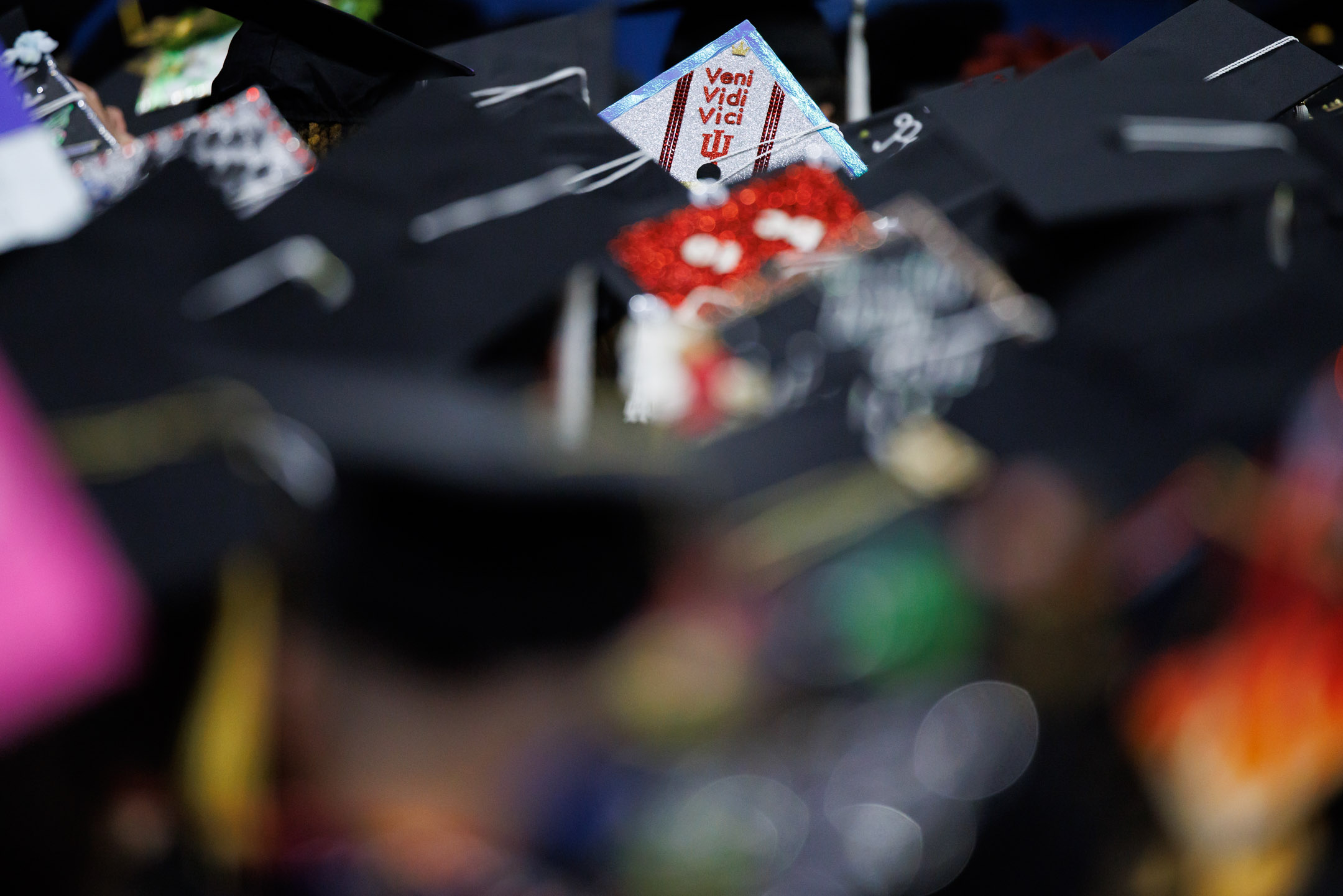 Streams lay on the floor during the IU Bloomington Graduate Commencement at Simon Skjodt Assembly Hall on Friday, May 9, 2025. (Photo by James Brosher/Indiana University)