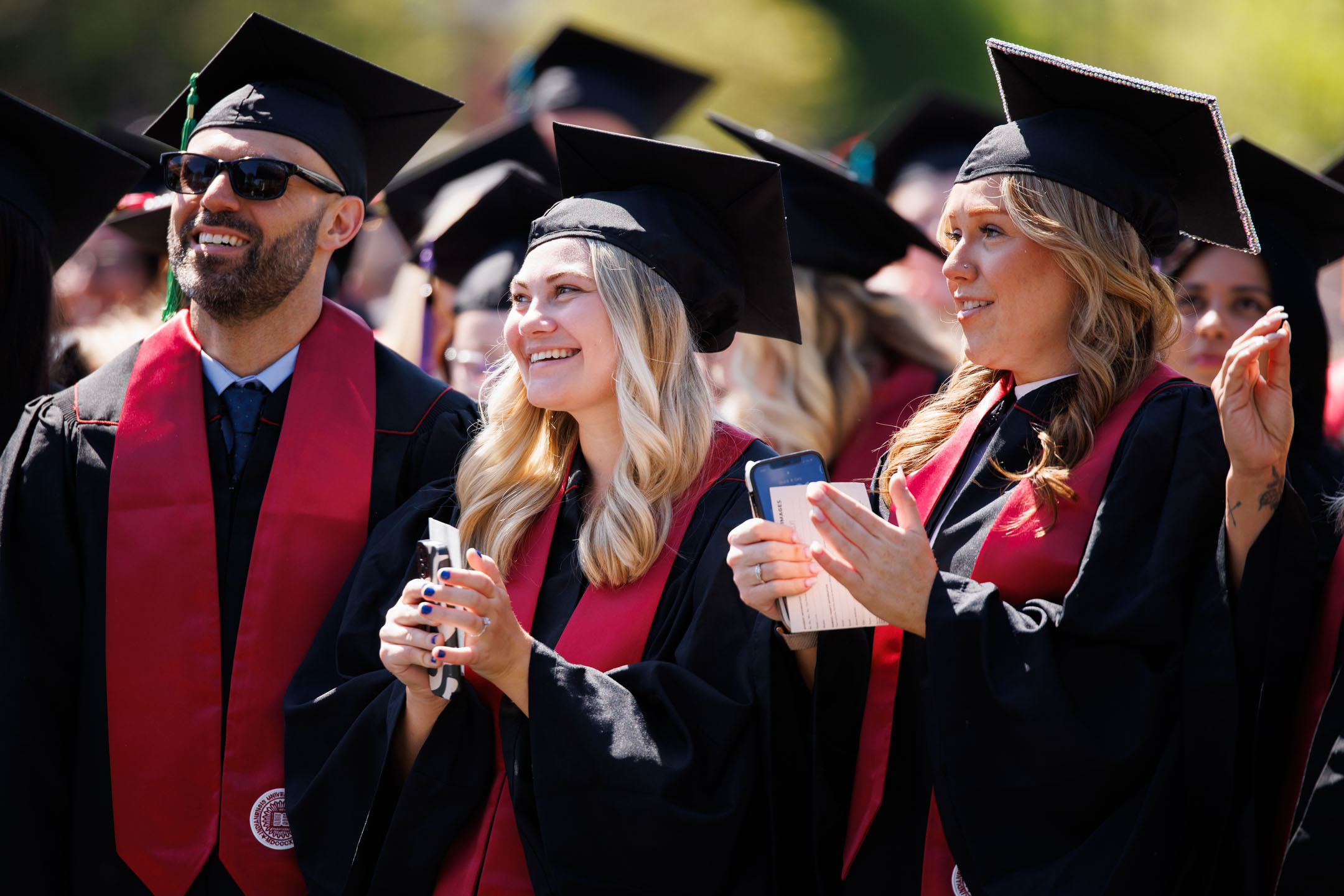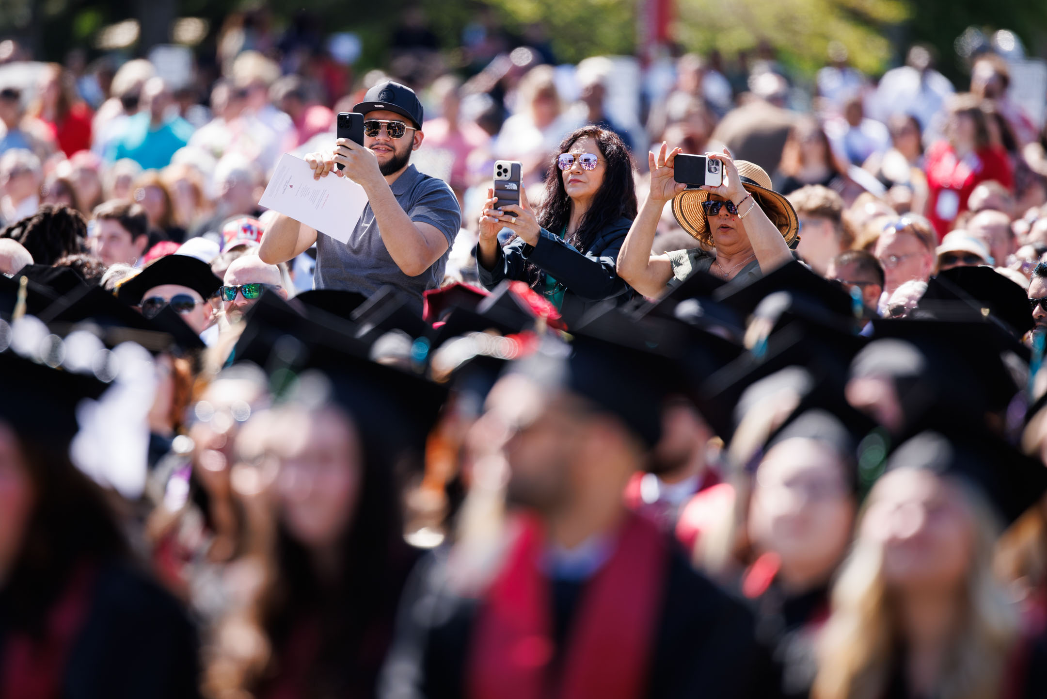 Audience members react as graduates walk in the processional during the IU Southeast Commencement in New Albany on Monday, May 12, 2025. (Photo by James Brosher/Indiana University)