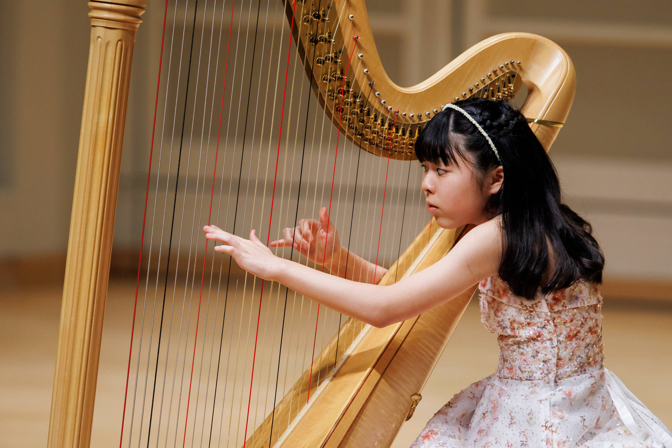 Rio Goto, 13, of Japan/Austria performs during the Stars of Tomorrow Concert at the 13th USA International Harp Competition at Indiana University in Bloomington, Indiana on Wednesday, May 21, 2025. (Photo by James Brosher)